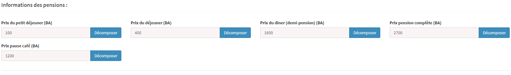 Vous pouvez définir les pris des différentes pensions, comme vous pouvez décomposer le prix d'une pension en prix donrées et prix boissons