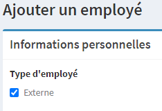 Si vous voulez ajouter un employé externe, cochez le boutton