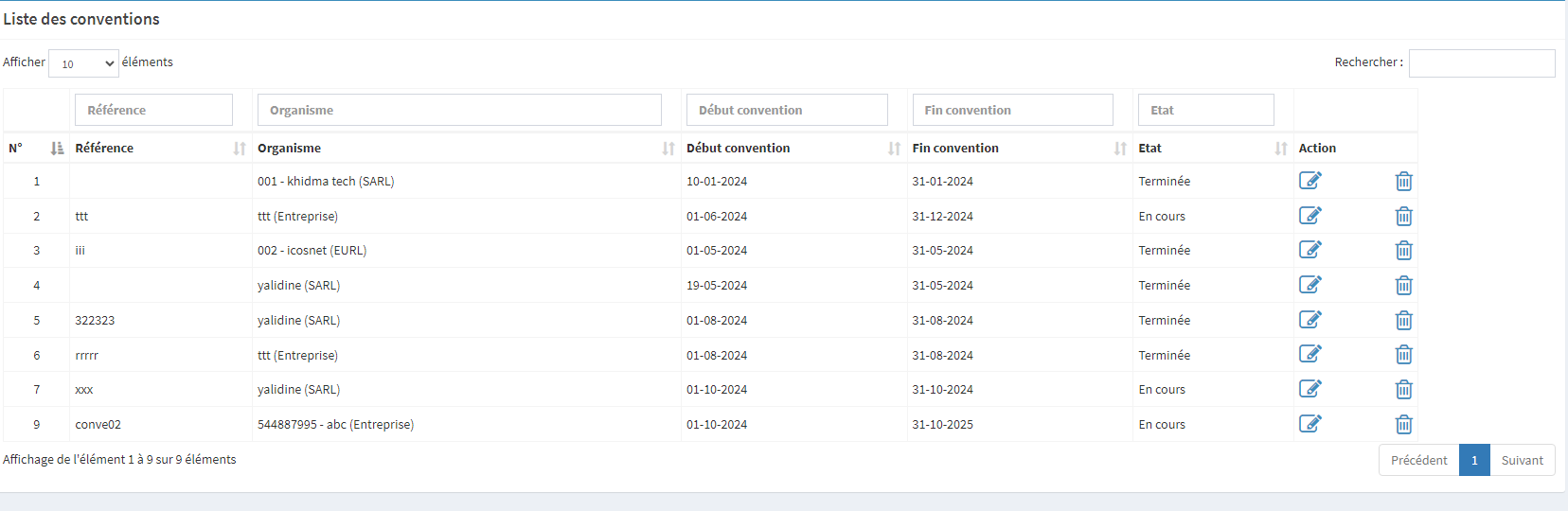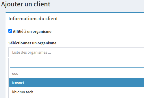 Ce composant est principalement utilisé par le réceptionniste pour gérer les orangismes et les entreprises qui travaillent avec l'hôtel (ajout, suppression, modification).